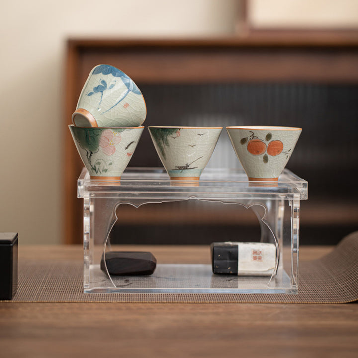 Buddha Stones Persimmon Boat Koi Fish Lotus Ceramic Teacup Kung Fu Tea Cup 50ml