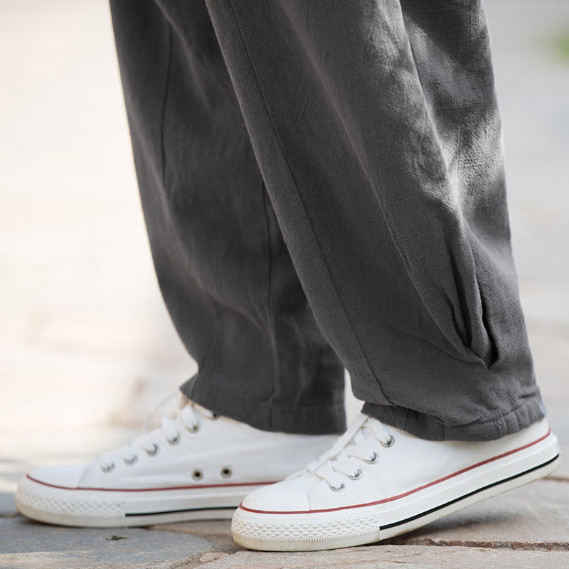 Casual Ramie Linen Yoga pants are crafted from a blend of ramie, linen, and cotton for exceptional breathability and comfort. These pants feature a gathered elastic cuff design at the ankles, ensuring a snug fit that stays in place during movement. Equipped with practical pockets, they offer convenience and functionality, making them a perfect choice for yoga and other activities requiring ease and flexibility.💕