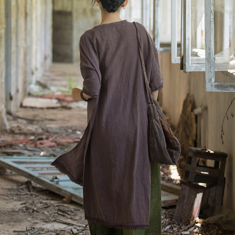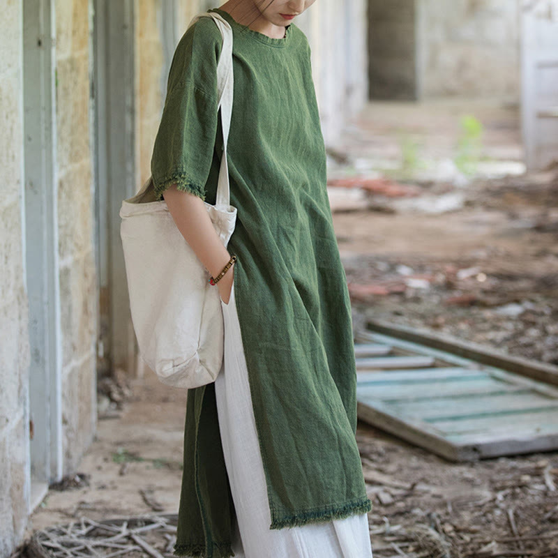 Mid Length Ramie Linen dress combines elegance and comfort with its half-sleeve and split hem design. Crafted from high-quality ramie linen, this dress offers a breathable and relaxed fit, perfect for any occasion. Its minimalist style highlights natural beauty and ease of movement, making it an ideal choice for those who appreciate simplicity and grace in their wardrobe.💕
