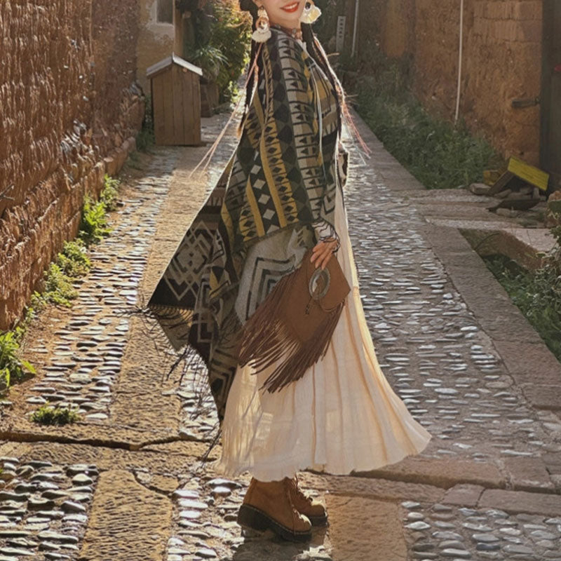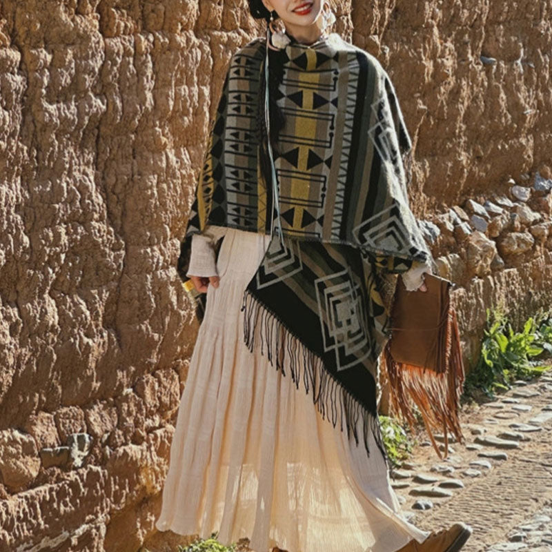 Buddha Stones' Geometric Pattern Tassels Scarf Wrap is a fusion of style and spirituality. This winter cozy travel wrap, adorned with tassels, combines comfort with a sense of spiritual continuity. Its geometric patterns symbolize the interconnectedness of life, making it an ideal accessory for those seeking warmth and a reminder of life's unity.