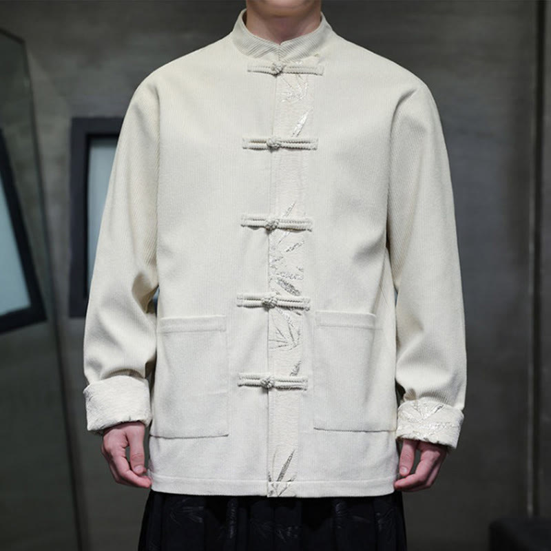 Buddha Stones Fall Bamboo Frog-Button Long Sleeve Men's Corduroy Cotton Jacket With Pockets - image 1
