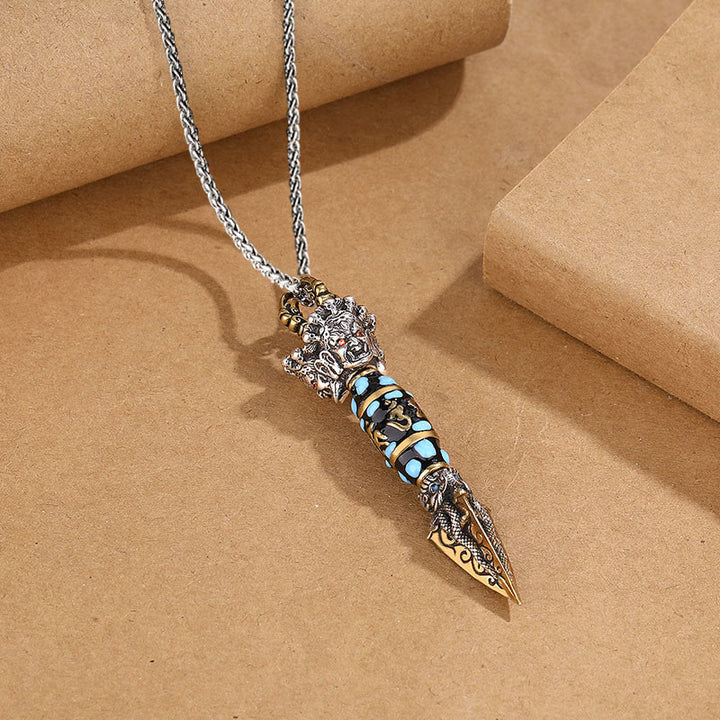 Buddha Stones Tibet Om Mani Padme Hum Dzi Bead Dorje Vajra Pattern Wealth Rotatable Necklace Pendant Necklaces & Pendants BS 1