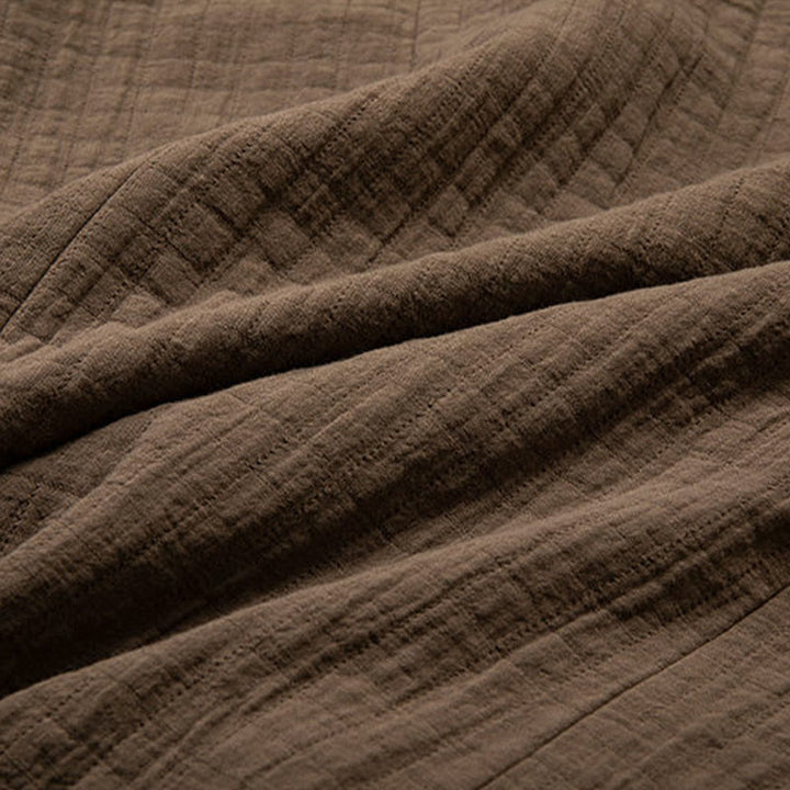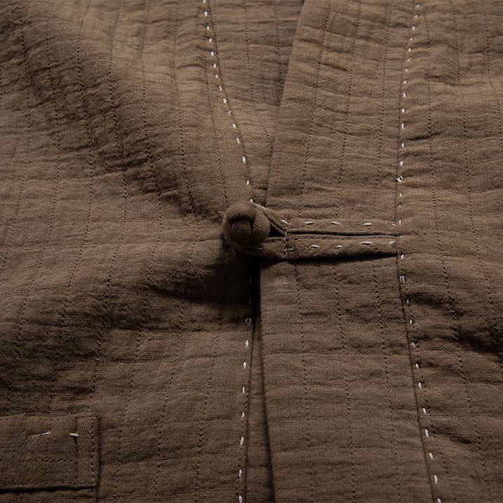 Buddha Stones Men's Plain Pleats Frog-Button Open Front Jacket Cotton Linen Long Sleeve Kimono - SaddleBrown - US/UK/AU48,EU58 (4XL) - image 0
