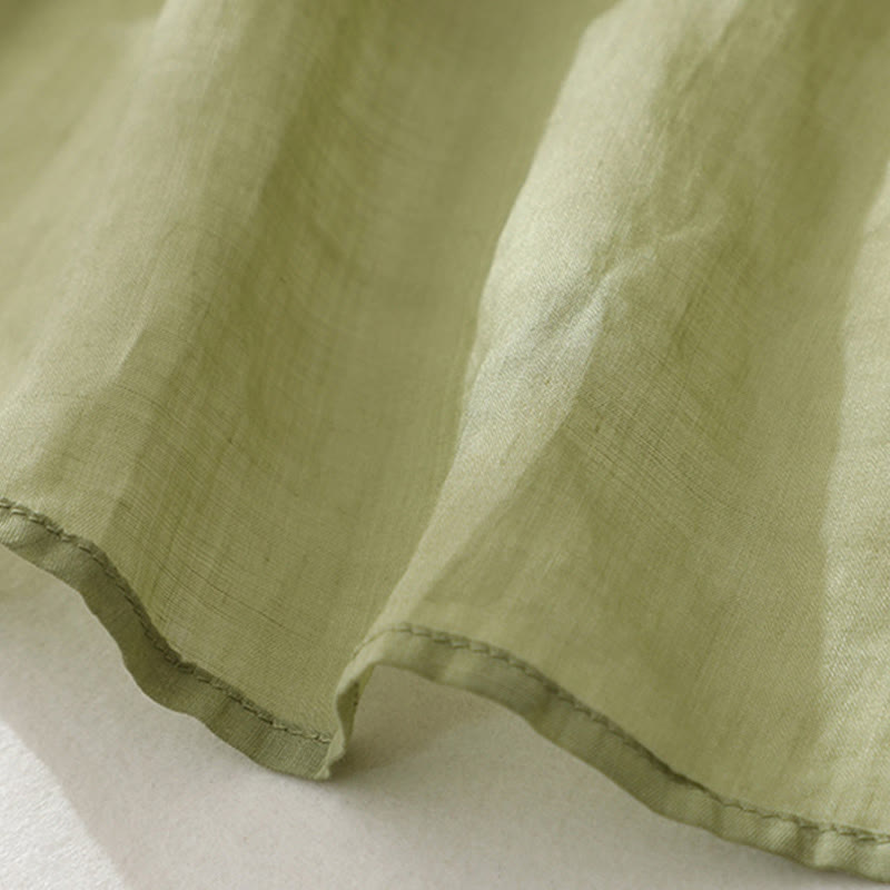 Buddha Stones Pure Color Lace Design Long Lantern Sleeve Women's Cotton Linen Shirt - YellowGreen - US14,UK/AU18,EU46 (2XL) - image 0
