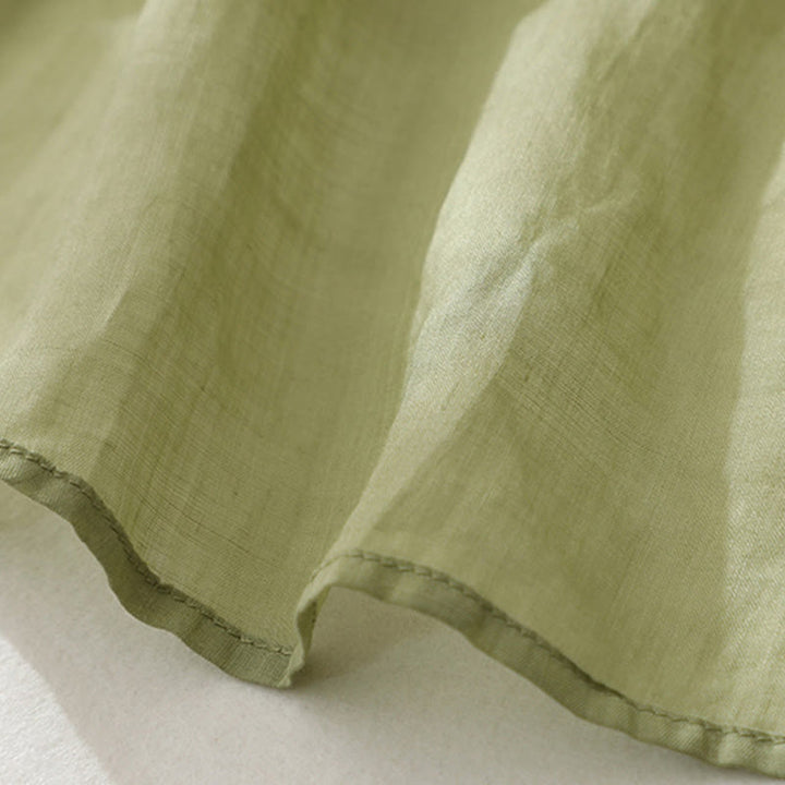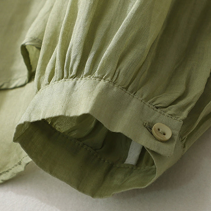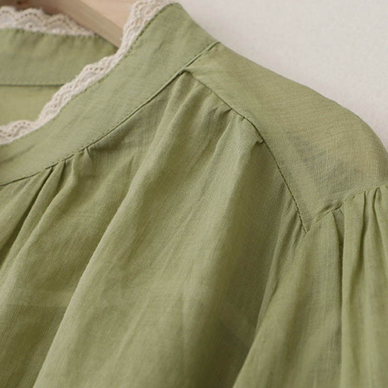 Buddha Stones Pure Color Lace Design Long Lantern Sleeve Women's Cotton Linen Shirt