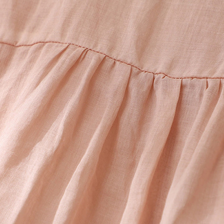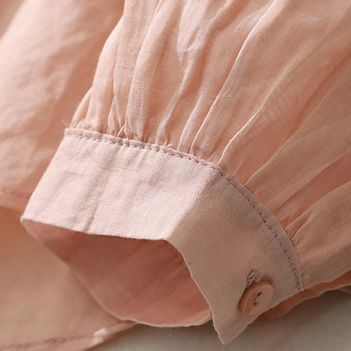 Buddha Stones Pure Color Lace Design Long Lantern Sleeve Women's Cotton Linen Shirt - LightSalmon - US14,UK/AU18,EU46 (2XL) - image 10