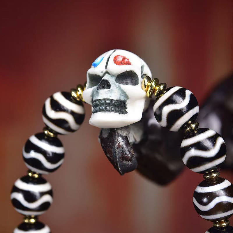 The Lord of the Corpse Forest is the main god in charge of the sky burial area in Tibet and is known as the "King of Ghosts". Therefore, Bone and skulls are featured prominently in Tibetan symbolism. Tibetans all firmly believe that wearing a corpse can drive away plague and suppress evil spirits. The Lord of the Corpse Forest also symbolizes all living beings that everything in the world is impermanent. Wearing the jewelry symbolizing the Lord of the Corpse reminds us to live only in the present moment and remember that nothing is permanent.