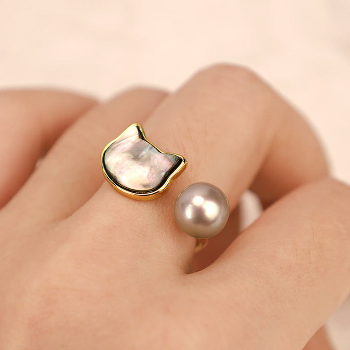 The black cat was paired with grey pearls. Gray pearl is white natural pearl processed by special technology, will not fade.