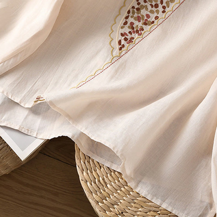 Ethnic Embroidery Cotton Shirts feature exquisite embroidery at the center, adding cultural depth and symbolism to this crew neck design. Made from a cotton-linen blend, it offers breathability and comfort, ideal for peaceful wear. The intricate embroidery reflects heritage and artistry, making it a meaningful choice for those valuing mindfulness and simplicity in their attire.💕