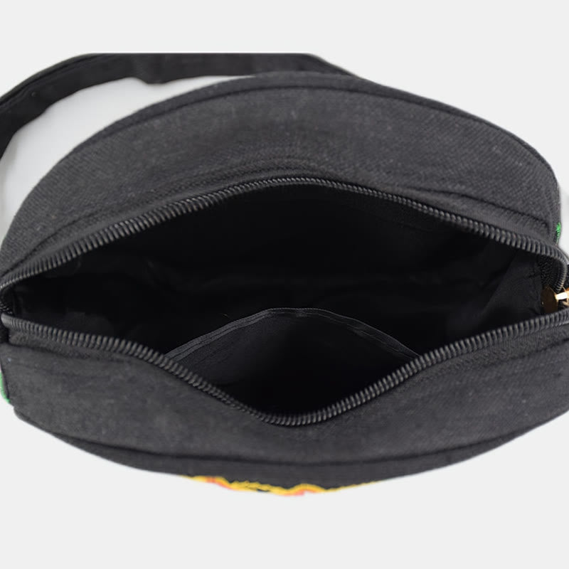 Flower Embroidery Canvas Crossbody Bag features a circular design with double-sided embroidery of money tree, peony, rose, peacock, and inula flowers. These symbols represent prosperity, beauty, and positive energy. Crafted from durable cotton canvas, this bag offers ample space for essentials while promoting harmony and spiritual well-being. Its meaningful design blends cultural significance with practicality, making it both a functional and symbolic accessory.💕