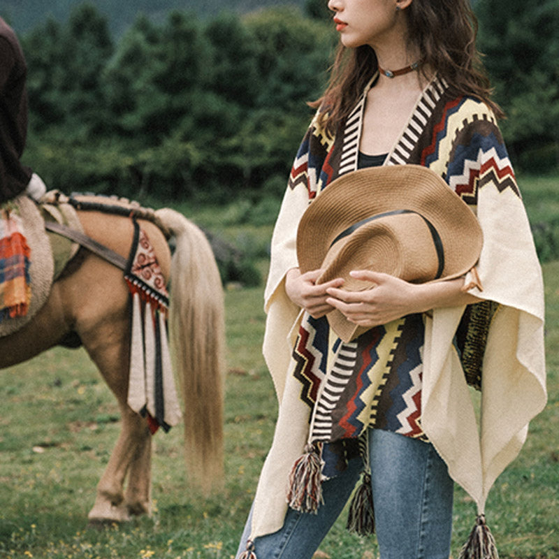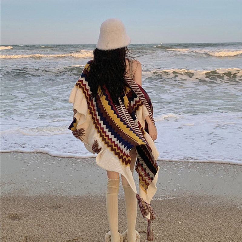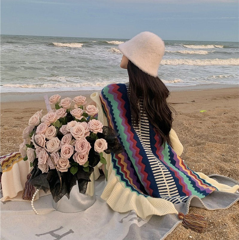 Buddha Stones Warm Striped shawl, featuring an array of colorful stripes that bring a cozy addition to any travel gear or daily outfit. Crafted from warm, soft fabric and adorned with tassel details, this shawl offers a blend of comfort and style, making it an essential accessory for those seeking to combine traditional Tibetan charm with a touch of modern fashion.