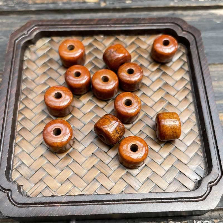 Buddha Stones Tibetan Bone Beads Three-Eyed Dzi Bead Sheep Horn Red Agate Strength Bracelet - 8*10mm Bone Beads Small Leaf Red Sandalwood(Wrist Circumference 14-16cm) - image 18