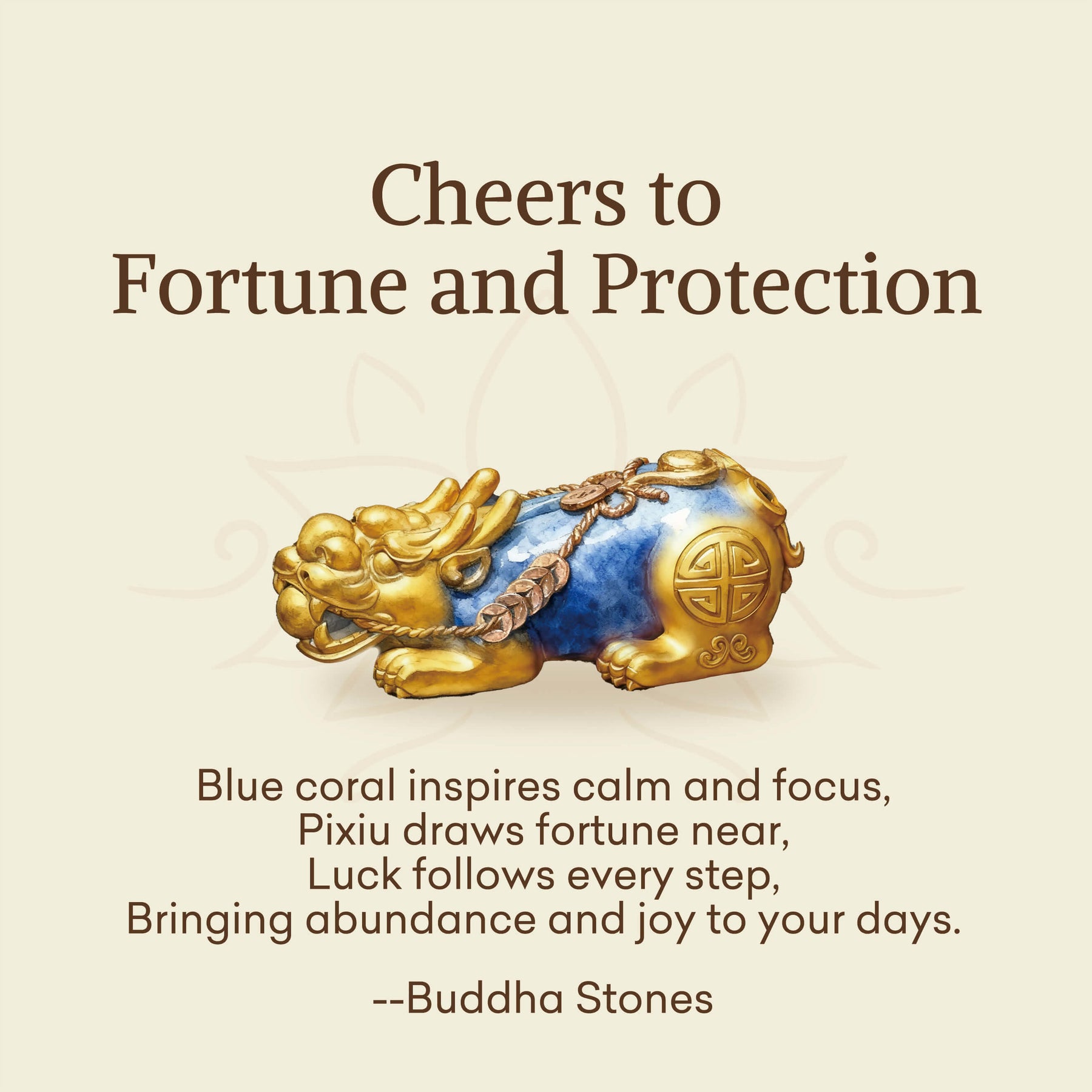 Buddha Stones "Cheers to Fortune and Protection" PiXiu Bracelet Includes Gift Message Card - Blue Sea Willow(Wrist Circumference 15-18cm) - Standard Gift Box - image 0