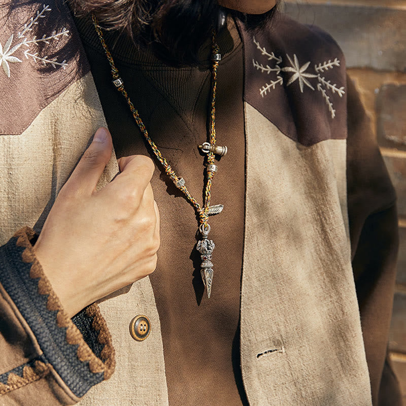 Embodying profound spirituality, the Buddha Stones Tibetan Dorje Vajra Pendant is meticulously crafted in 925 sterling silver. A representation of both indestructibility and irresistible force, it stands as a beacon of enlightenment and strength. Paired with the Six True Words 'Om Mani Padme Hum', this pendant resonates with love, wisdom, and purity. Enriched with silver's blessings, wearing it offers protection and balance. A magnificent blend of tradition, power, and artistry.💕