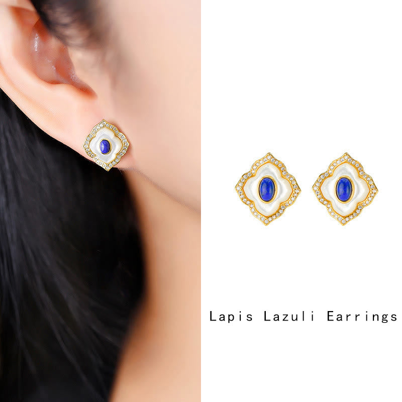 - Material: Tridacna Stone, Lazurite, Tridacna Stone Inlaid With Lazurite, Zircon, Metal Parts: 925 Sterling Silver