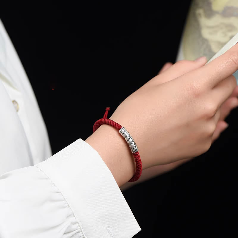 In lineages of Tibetan Vajrayana Buddhism, tying a cord or string around the wrist is common during ceremonies. Traditionally, the Lama blesses the string and then ties a knot and imbues it with a mantra. Similar to other traditions, it's said that these red cords bring luck and offer protection.