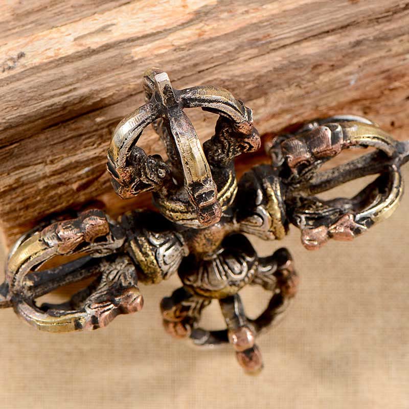 Vajra is a five-pronged ritual object used in Buddhist ceremonies in Tibet. It symbols the properties of a diamond (indestructibility) and a thunderbolt (irresistible force). As a symbol for the properties of a diamond, vajra signifies indestructibility as diamonds are the hardest of stones. As a symbol for the thunderbolt, vajra represents the irresistible force. It denotes cutting through ignorance since the god Indra kills ignorant persons with this weapon.