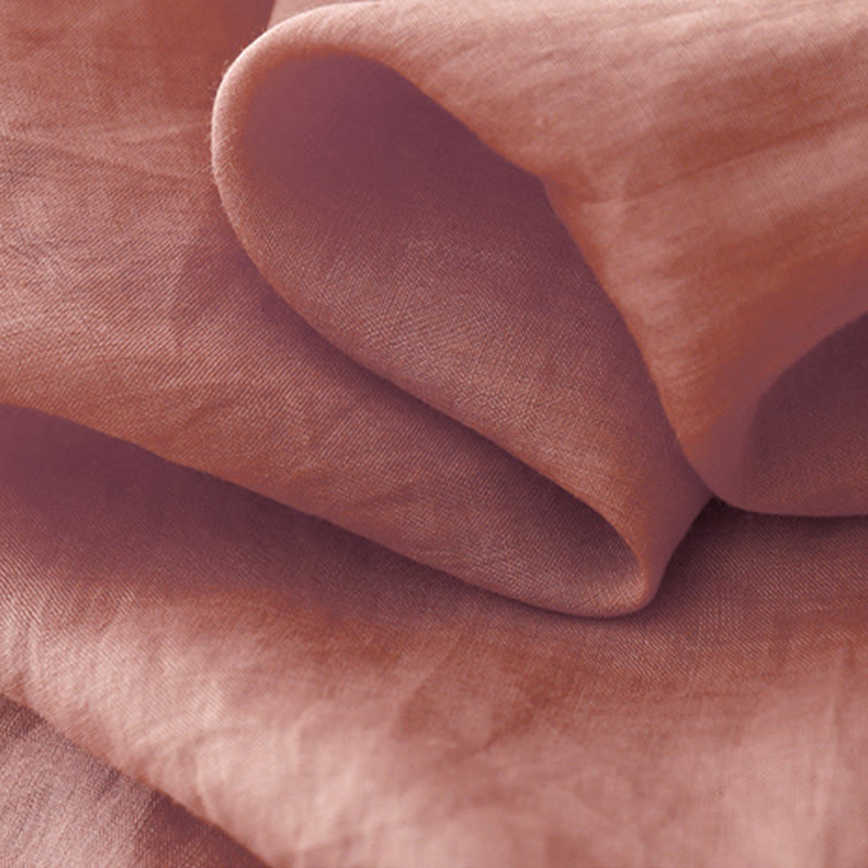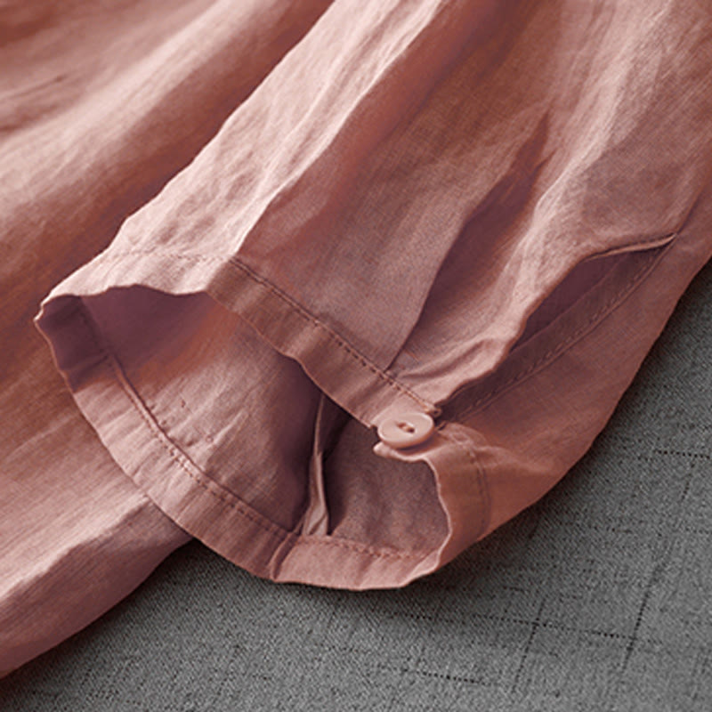 Buddha Stones Artistic Pure Color Embroiderd Front Button Design Women's Cotton Half Sleeve Shirt Cardigan - LightCoral - US12,UK/AU16,EU44 (2XL) - image 0
