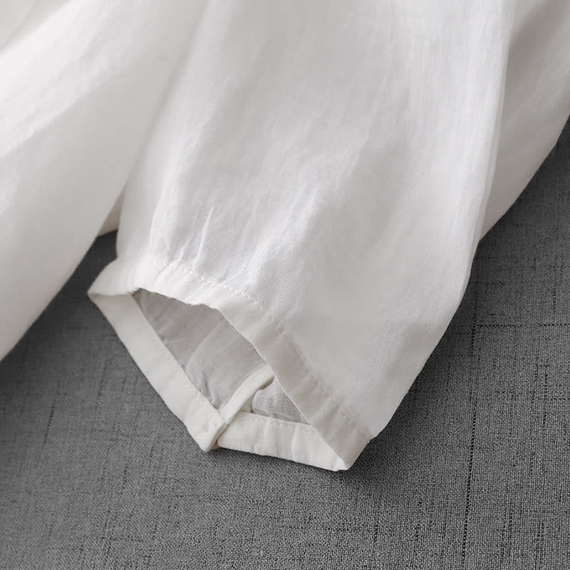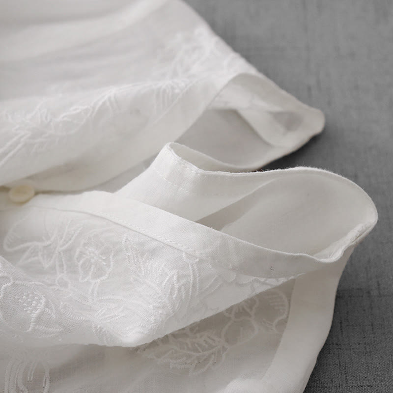 Buddha Stones Artistic Pure Color Embroiderd Front Button Design Women's Cotton Half Sleeve Shirt Cardigan - White - US12,UK/AU16,EU44 (2XL) - image 11