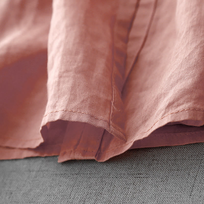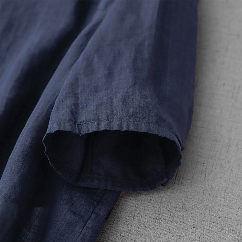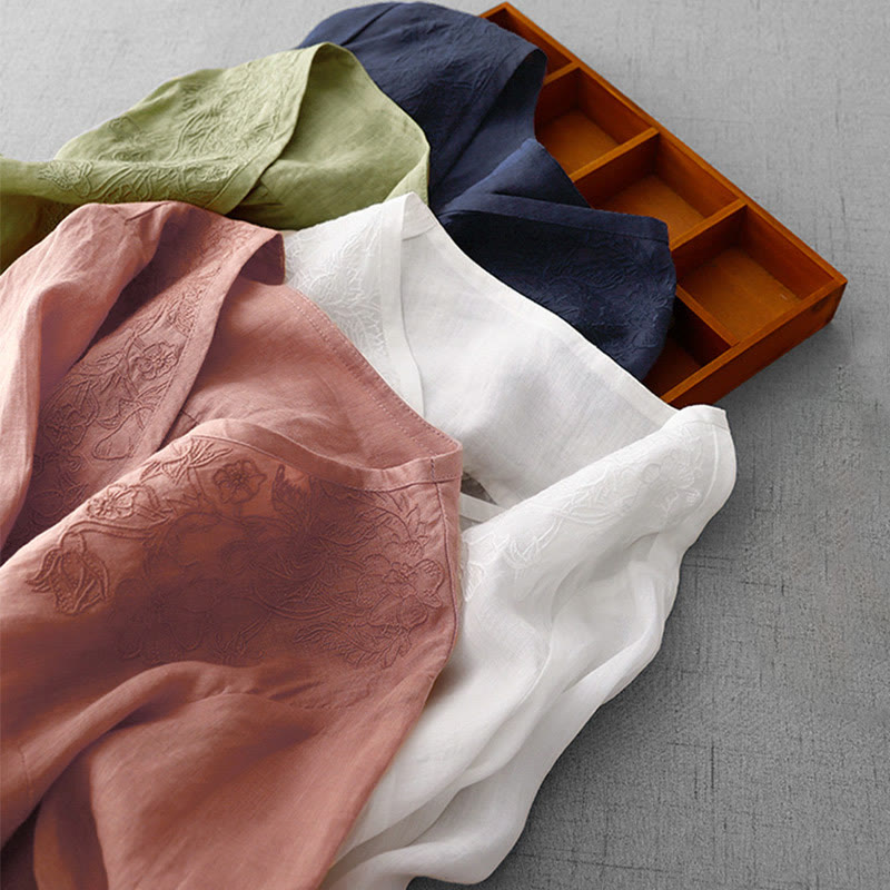 Buddha Stones Artistic Pure Color Embroiderd Front Button Design Women's Cotton Half Sleeve Shirt Cardigan