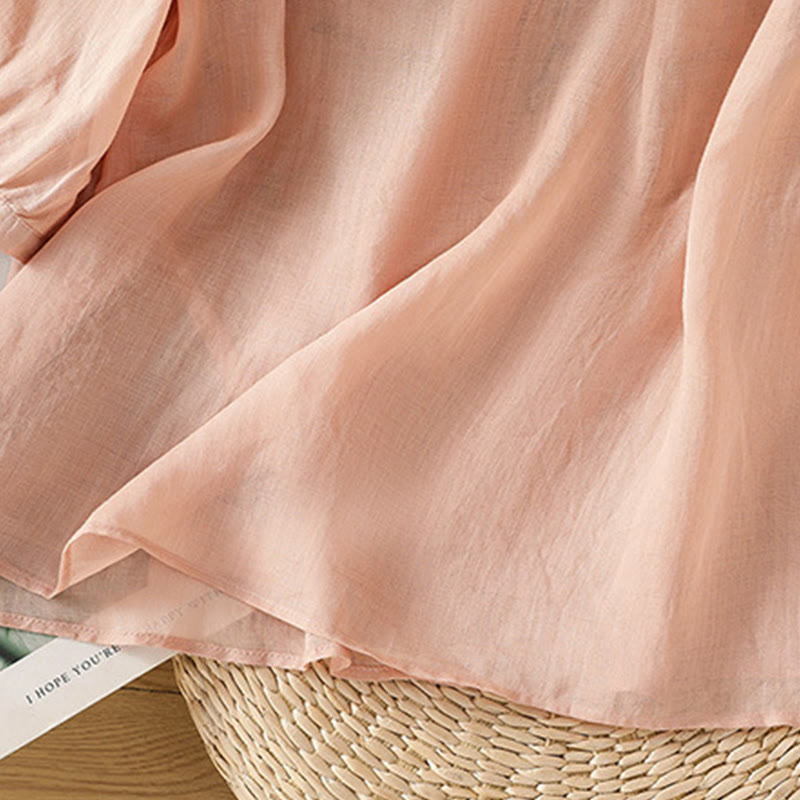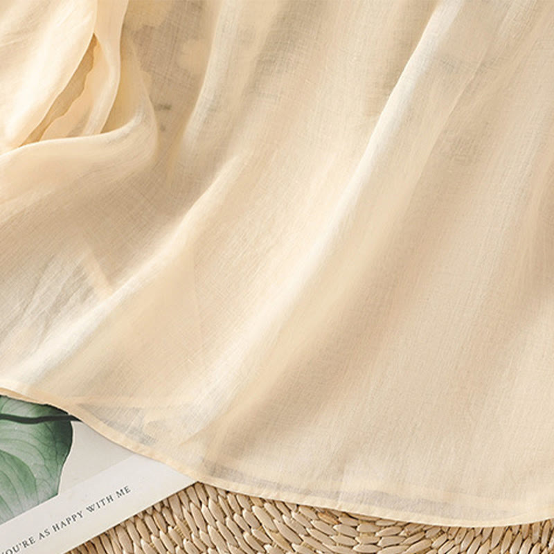 Buddha Stones Casual Women's Flowers Green Leaves Embroidery Pattern V-Neck Design Half Sleeve Cotton Linen Shirt - PapayaWhip - US8-10,UK/AU12-14,EU40-42 (2XL) - image 9
