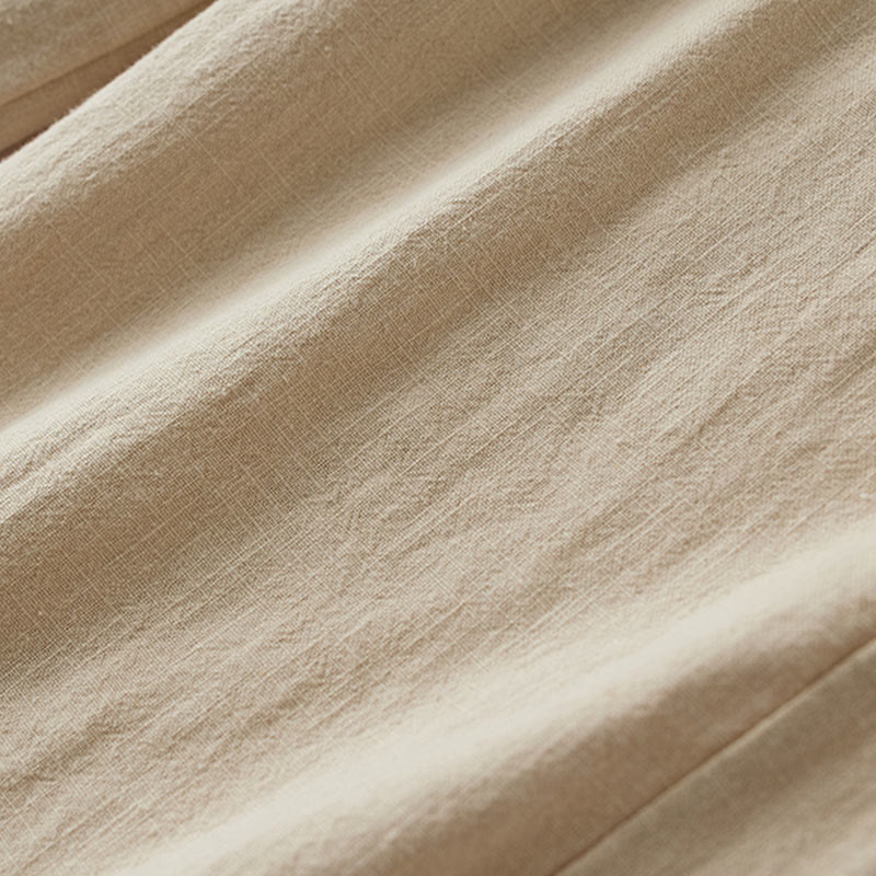 Buddha Stones Casual Plain Loose Straight Leg Women's Ramie Cotton Wide Leg Pants With Pockets