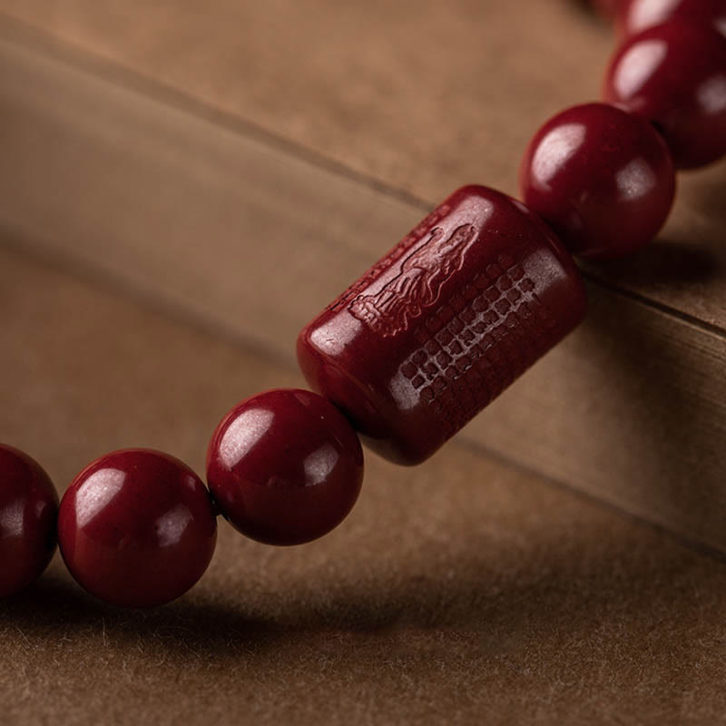 Natural Cinnabar Heart Sutra bracelet features vibrant cinnabar beads inscribed with the sacred Heart Sutra, symbolizing blessings and spiritual wisdom. This bracelet is designed to enhance mindfulness and inner peace. The intricate cinnabar beads serve as a reminder of compassion and spiritual connection, making it a meaningful accessory for those seeking to deepen their spiritual practice.💕