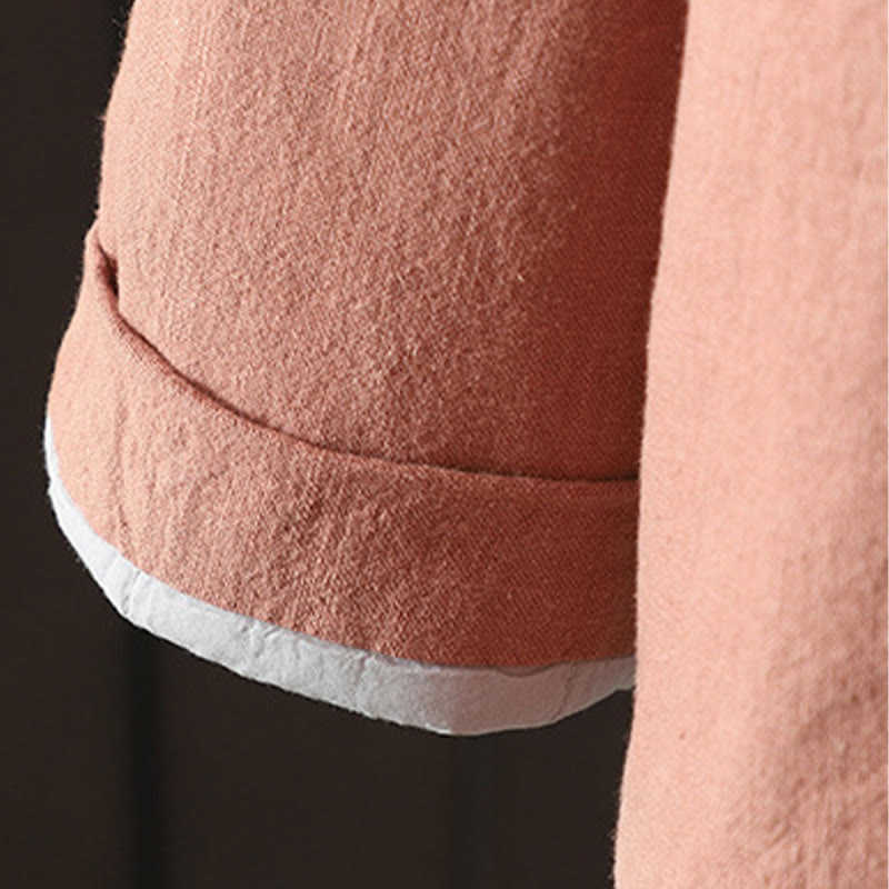 Solid Color Turtleneck Cotton Clothes feature a classic frog-button closure and comfortable turtleneck design, crafted from a soft, breathable cotton-linen blend. Its minimalist solid color emphasizes traditional elegance while providing comfort and ease. Ideal for cooler weather, this jacket embodies both cultural charm and functionality, making it a meaningful addition to any wardrobe.💕