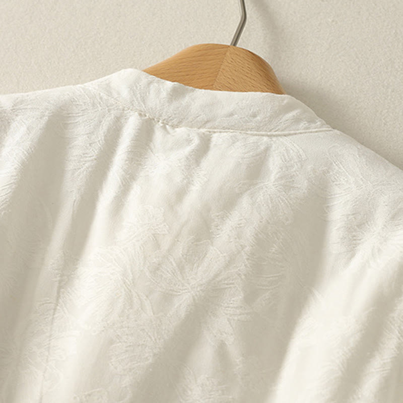 Buddha Stones Women's Solid Color Frog-Button Design Long Sleeve Cotton Jacket With Pockets