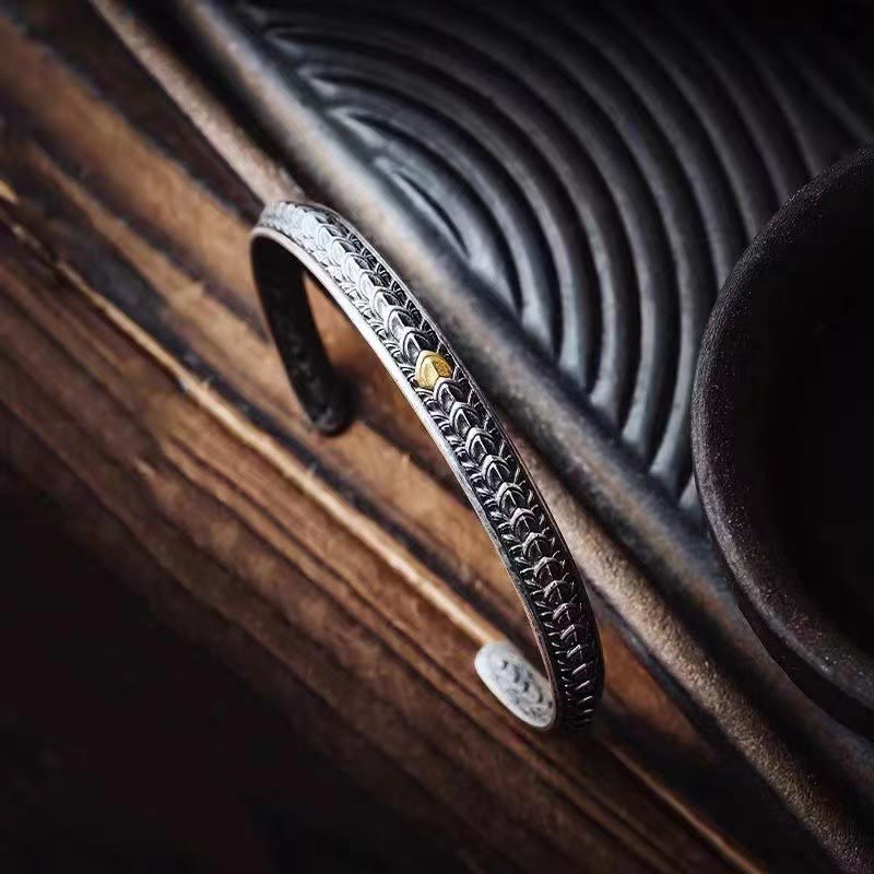 Buddha Stones Vintage Dragon Scales Pattern Luck Wealth Cuff Bracelet Bangle