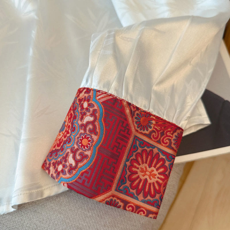 Buddha Stones Frog-Button Dragon Flower Bamboo Jacquard Design Women's Vest Waistcoat Shirt - White Shirt - US8-10,UK/AU12-14,EU40-42 (2XL) - image 8