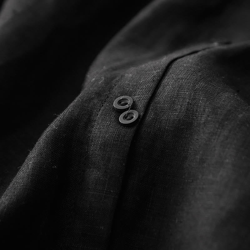 Buddha Stones A-line Buttons Slit Design Elastic Waist Cotton Women's Skirt With Pockets - Black - US12,UK/AU16,EU44 (2XL) - image 6
