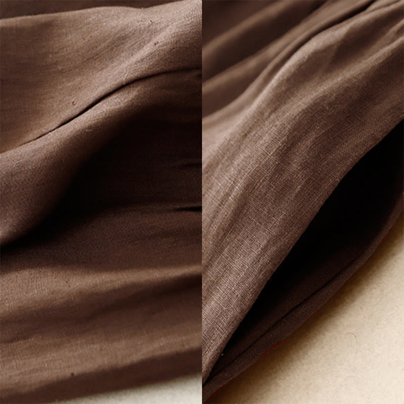 Buddha Stones A-line Buttons Slit Design Elastic Waist Cotton Women's Skirt With Pockets - Linen - US12,UK/AU16,EU44 (2XL) - image 11