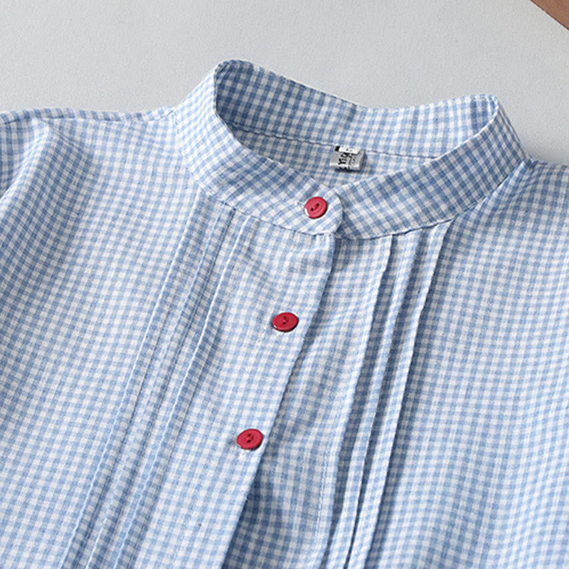 Buddha Stones Casual Plaid Pattern Long Lantern Sleeve Cotton Linen Midi Dress With Pockets - LightSkyBlue - US8-10,UK/AU12-14,EU40-42 (2XL) - image 0