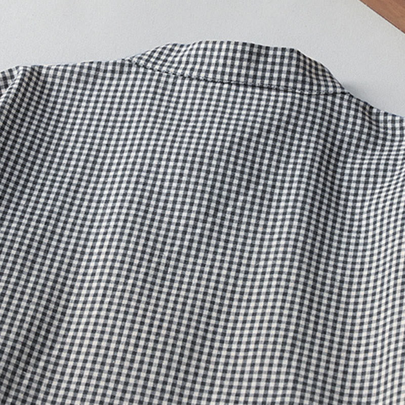 Buddha Stones Casual Plaid Pattern Long Lantern Sleeve Cotton Linen Midi Dress With Pockets - Black - US8-10,UK/AU12-14,EU40-42 (2XL) - image 6