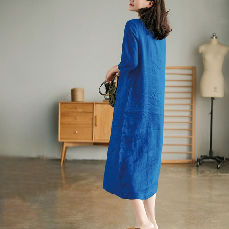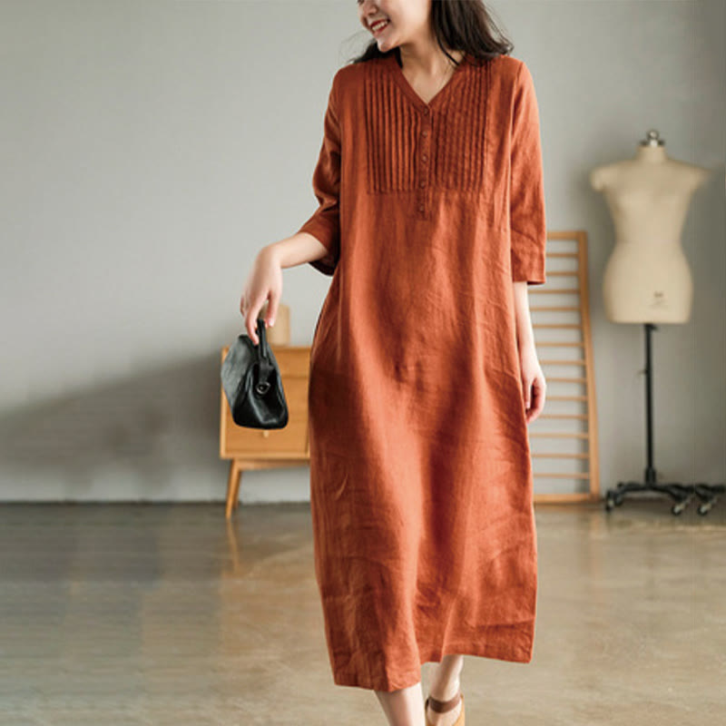 • PREMIUM MATERIAL: The Midi Dress is crafted from high-quality, skin-friendly fabric, infused with 30% linen for enhanced comfort and breathability, relaxed and Comfortable, which will prevent excessive perspiration and keeps the body comfortable. Also, is a better environmentally friendly choice for daily wear.