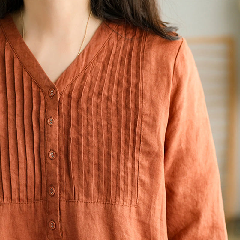 Buddha Stones Casual Plain Accordion Pleats V-neck Half Sleeve Design Midi Dress With Pockets - Coral - US12,UK/AU16,EU44 (3XL) - image 6