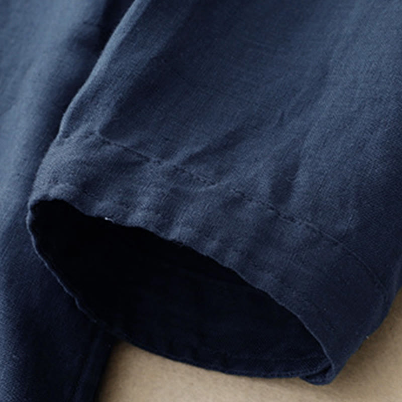 Buddha Stones Fall Commute Plain Buttons Design Long Sleeve Cotton Midi Dress With Pockets - image 17
