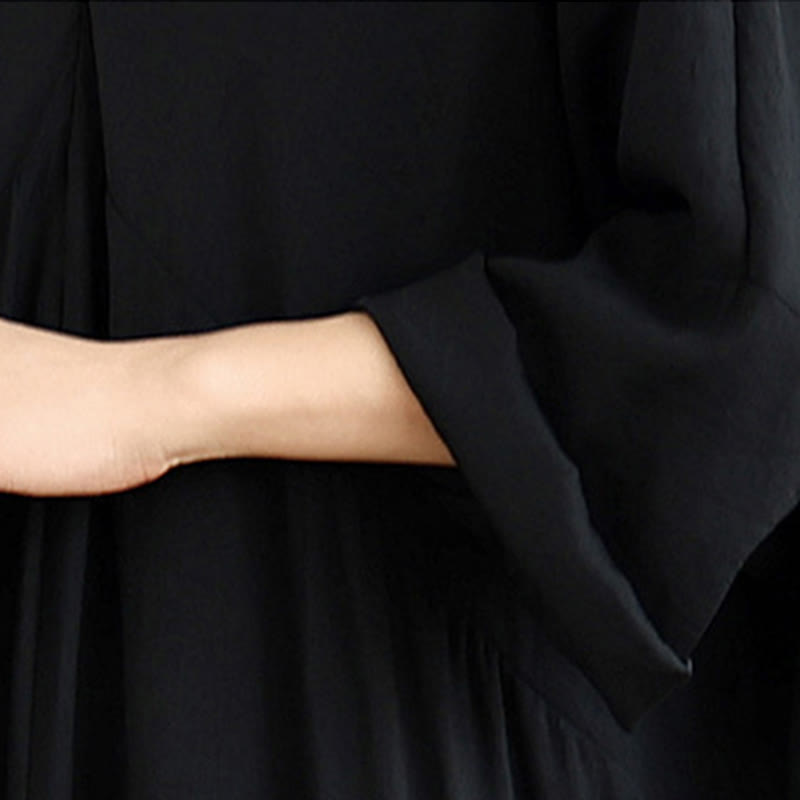 Buddha Stones Fall Pure Color V-Neck Long Sleeve Cotton Midi Dress - Black - US4-12,UK/AU8-18,EU36-46(F) - image 0