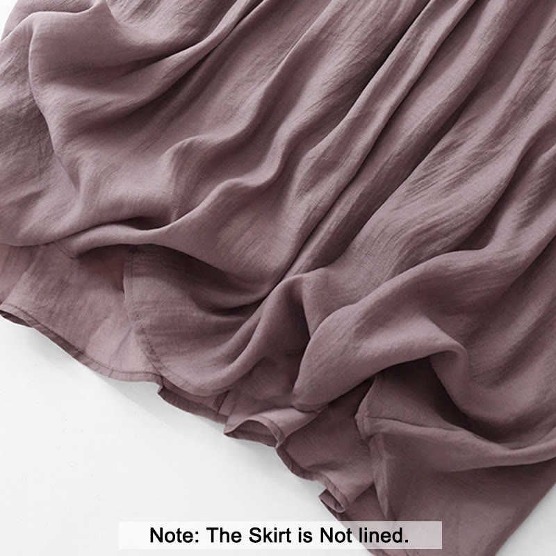 Buddha Stones Simple Pleated Design Elastic Waist Women's Skirt With Pockets