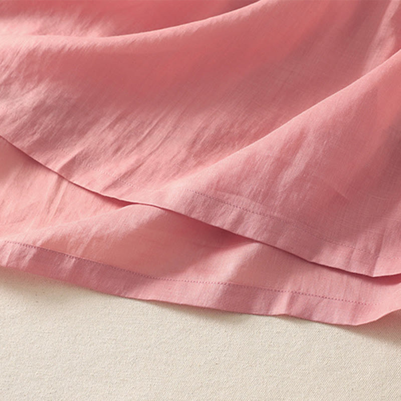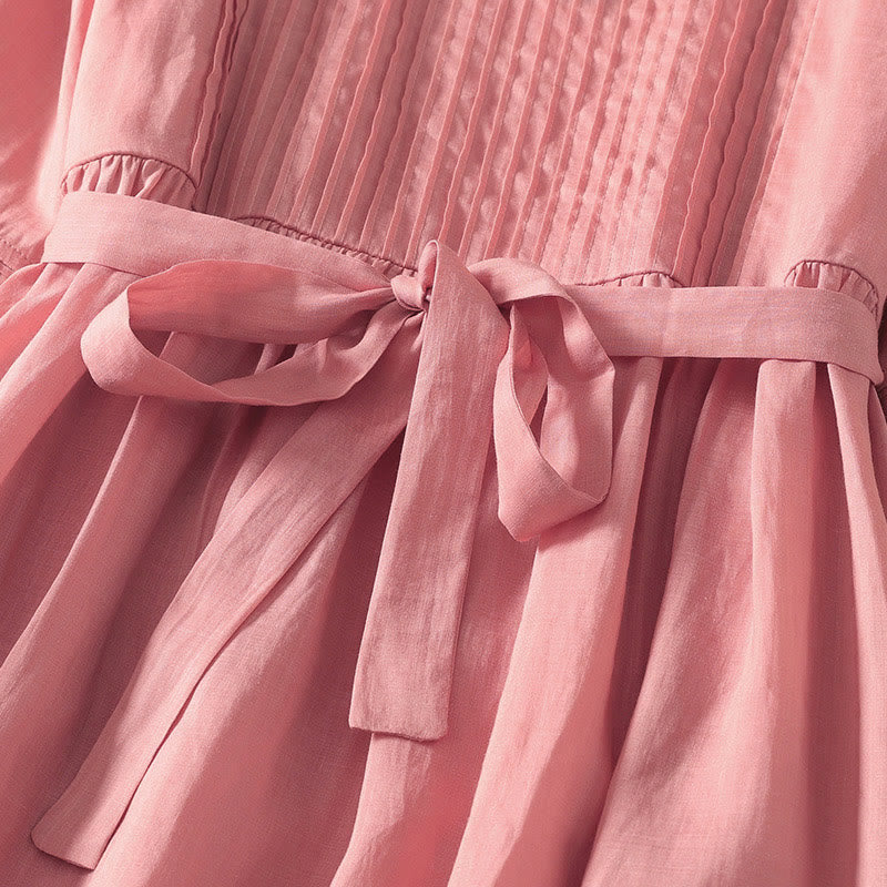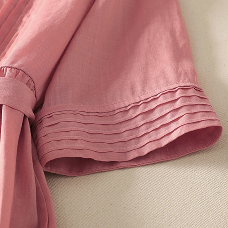 Buddha Stones Summer Short Sleeve Pleats Lace-up Cotton Linen Women's Midi Dress With Pockets - MistyRose - US8-10,UK/AU12-14,EU40-42 (2XL) - image 0