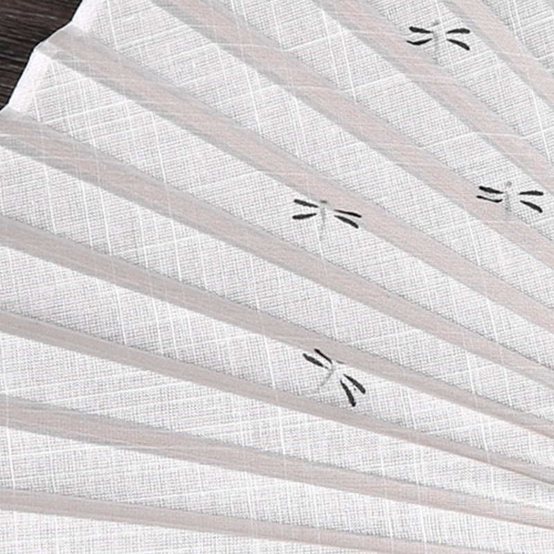 Buddha Stones Chinese Characters Golden Dragonfly Handheld Cotton Linen Bamboo Folding Fan 22cm - White 22cm - image 3