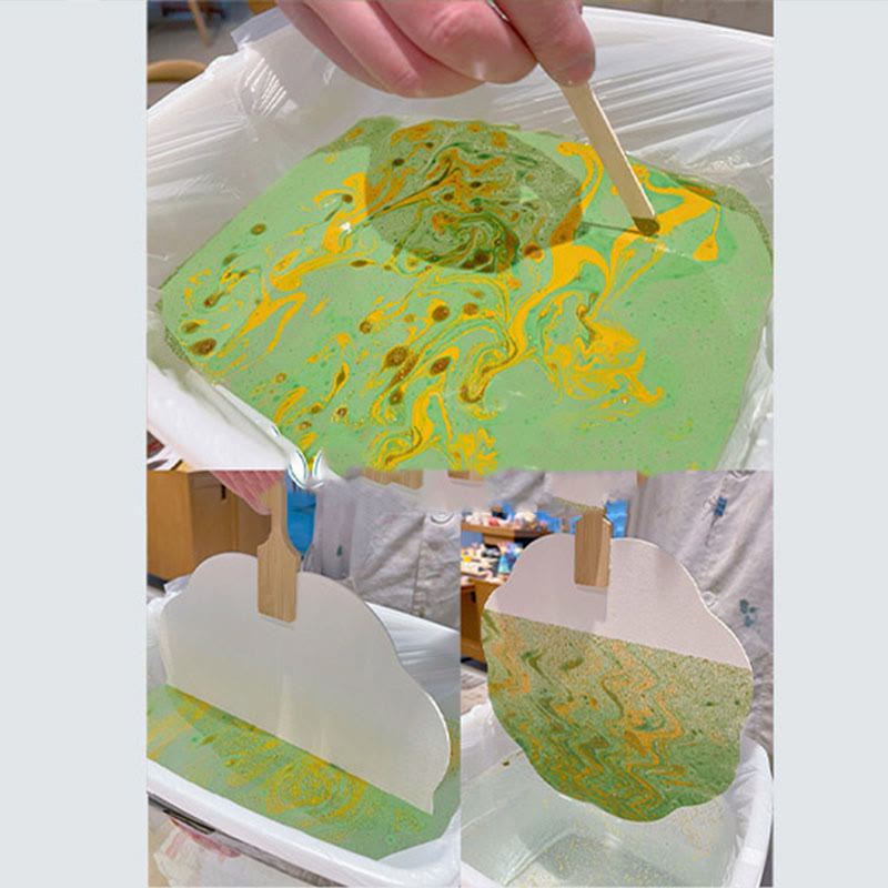 5. If you change the color, the excess paint on the water surface can be absorbed by putting a paper towel into the water, and then