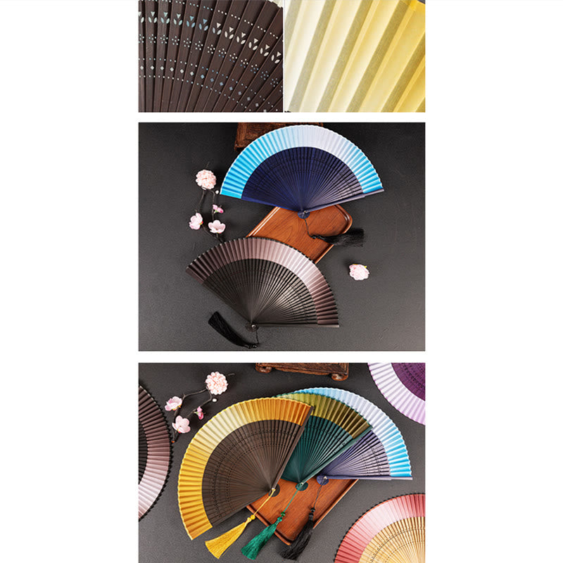 Discover enchanting elegance with our Gradient Handheld Bamboo Folding Fan. Crafted with premium Polyester fabric, bamboo, and tassels, it offers cooling comfort and unique patterns that exude classic Chinese charm. Its compact size makes it portable for any occasion, and it serves as a versatile decorative piece for weddings, parties, or home decor. Note: Handmade, each fan may vary slightly.💕