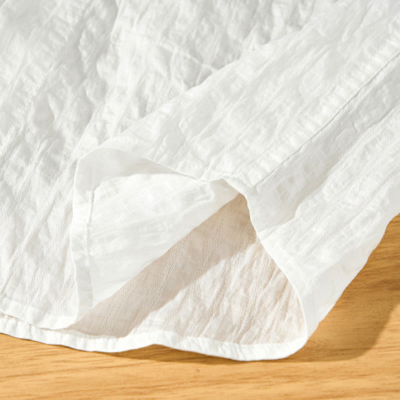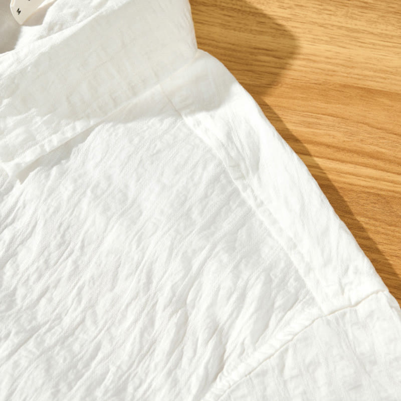 Buddha Stones Summer Solid Breathable Men's Buttons Short Sleeve Tencel Shirt