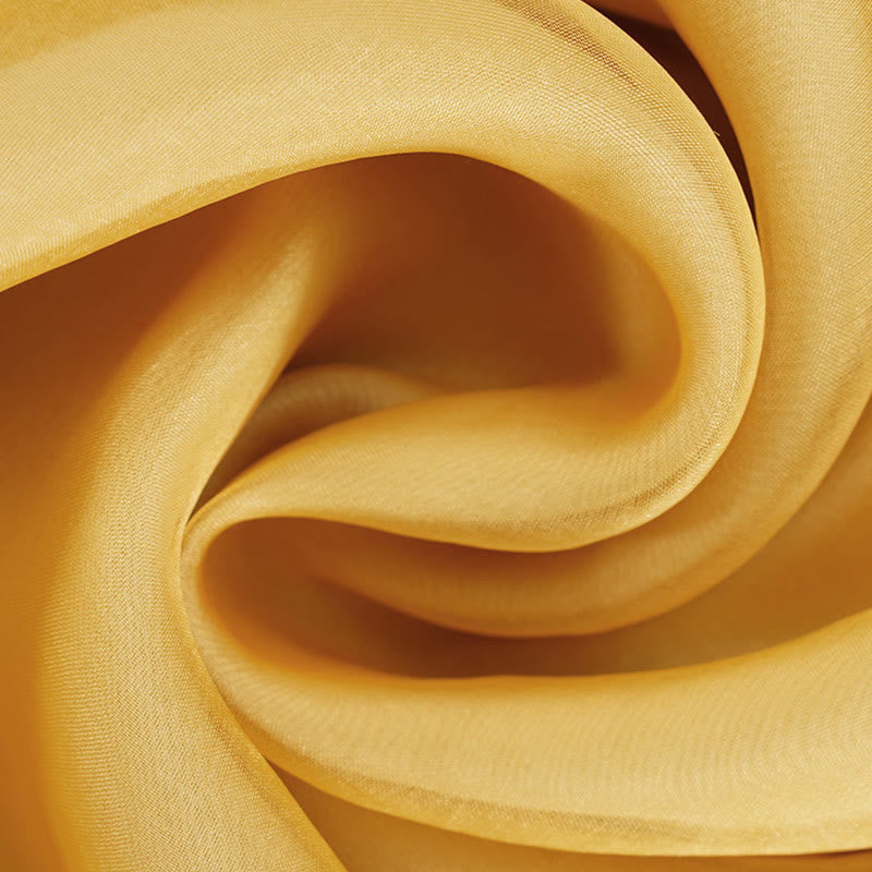 Organza is a lightweight, plain-woven, sheer fabric made using silk with a crisp handle, often as an outer layer to add a soft outline. Organza can create a captivating and ethereal aesthetic, whether it's a stunning wedding dress or an exquisite evening gown.