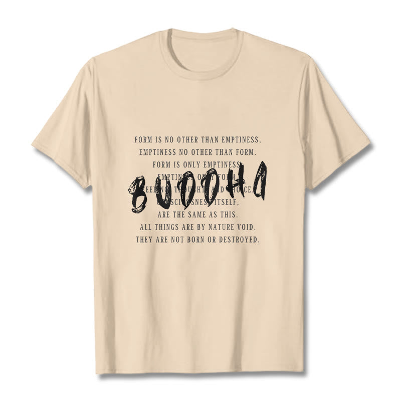 Form Is No Other Than Emptiness Tee embodies deep spiritual wisdom with its thought-provoking message. Made from soft, breathable fabric, this tee offers comfort while promoting mindfulness and reflection. The minimalist design encourages contemplation on the nature of existence, making it ideal for meditation. Perfect for those seeking to explore and understand profound spiritual concepts.
