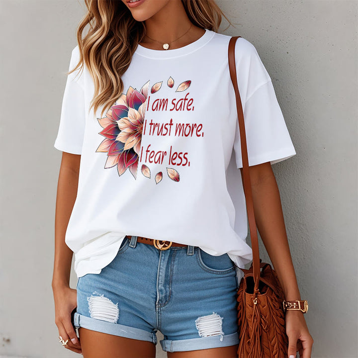 I Am Safe Tee T-shirt features a reassuring message designed to promote a sense of security and peace. Made from soft, breathable fabric, this t-shirt offers exceptional comfort. The calming design serves as a reminder to embrace safety and tranquility in your daily life. Perfect for those seeking inner peace, this tee combines comfort with a comforting message.