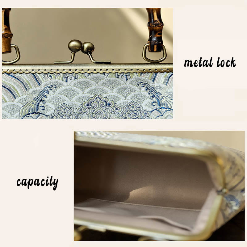 Silver Lines Bamboo Handle Metal Chain Crossbody Bag features a sleek design with silver lines and a durable metal chain and a bamboo handle. This versatile shoulder bag combines modern elegance with functionality, making it perfect for any occasion. Its stylish and practical design ensures it complements both casual and formal attire, adding a touch of sophistication and contemporary flair to your look.💕