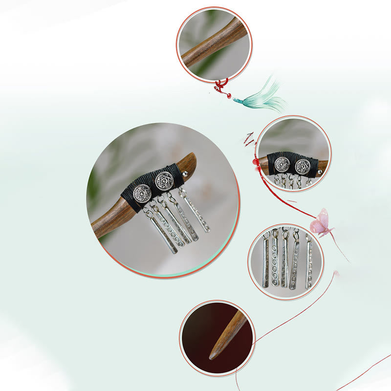 Buddha Stones Silver Tassel Green Sandalwood Soothing Hairpin